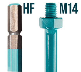 Er worden verschillende roermodellen aangeboden met verschillende schachtopnames voor aandrijfmachines. een speciale zeskantige schacht voor het HEXAFIX hulpstuk en roerstaaf met M-14 schroefdraad.