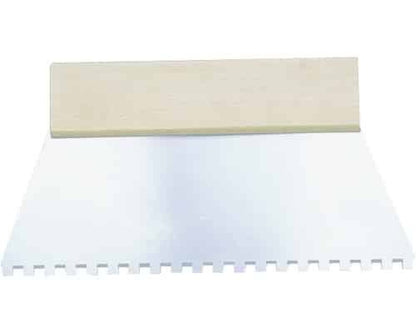 Deze lijmkam heeft haakse tanden van 6 x 6 millimeter en is met zijn 250 millimeter extra lang. Een lijmkam is als het ware een spatel met trapeziumvormige of zaagvormige tanden. Hiermee kan de kit of lijm gelijkmatig aangebracht worden op een ondergrond. Denk hierbij aan muren en vloeren. Hoe grof de kam moet zijn en hoeveel lijm er gebruikt moet worden, hangt nauw samen met het materiaal dat verlijmd dient te worden.