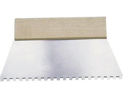Deze lijmkam heeft haakse tanden van 4 x 4 millimeter en is met zijn 250 millimeter extra lang. Een lijmkam is als het ware een spatel met trapeziumvormige of zaagvormige tanden. Hiermee kan de kit of lijm gelijkmatig aangebracht worden op een ondergrond. Denk hierbij aan muren en vloeren. Hoe grof de kam moet zijn en hoeveel lijm er gebruikt moet worden, hangt nauw samen met het materiaal dat verlijmd dient te worden.